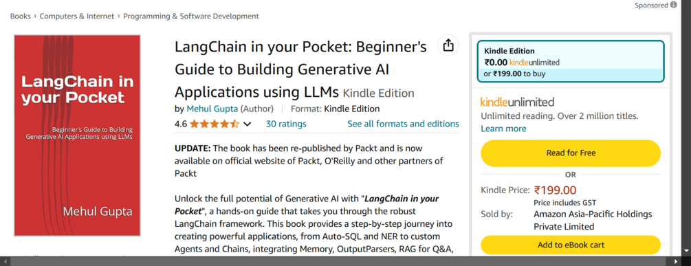 Since the arrival of ChatGPT in late 2022, the AI landscape has evolved dramatically. "LangChain in your Pocket" invites you to move beyond ChatGPT and explore the versatility of LangChain, a Python/JavaScript framework at the forefront of Large Language Models (LLMs). Whether you're building Classification models, Storyteller, or Internet-enabled GPT, LangChain empowers you to do more.